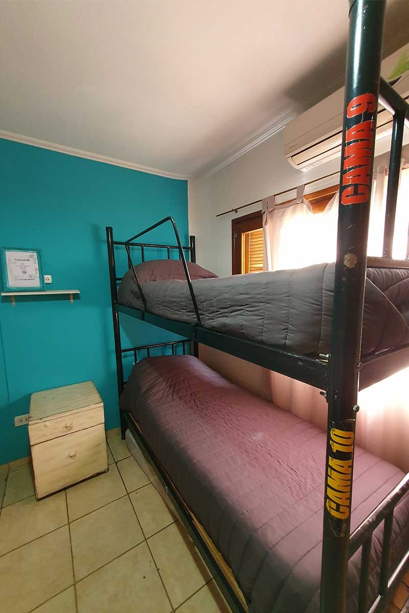 Cómoda habitación que puede ofrecerte opción como privada para grupos pequeños de amigos o compañeros de trabajo, o bien como opción de cama en habitación compartida. La habitación cuenta con aire acondicionado (verano).